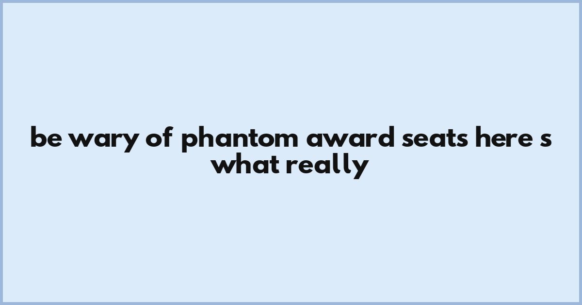Be Wary Of Phantom Award Seats—here’s What Really
